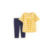 Este encantador set de dos piezas de Carter's es la elección perfecta para un look coqueto y confortable. Combina la dulzura de una blusa con volantes y un diseño a cuadros (Plaid) con la comodidad y elasticidad de una calza que simula la textura del denim.